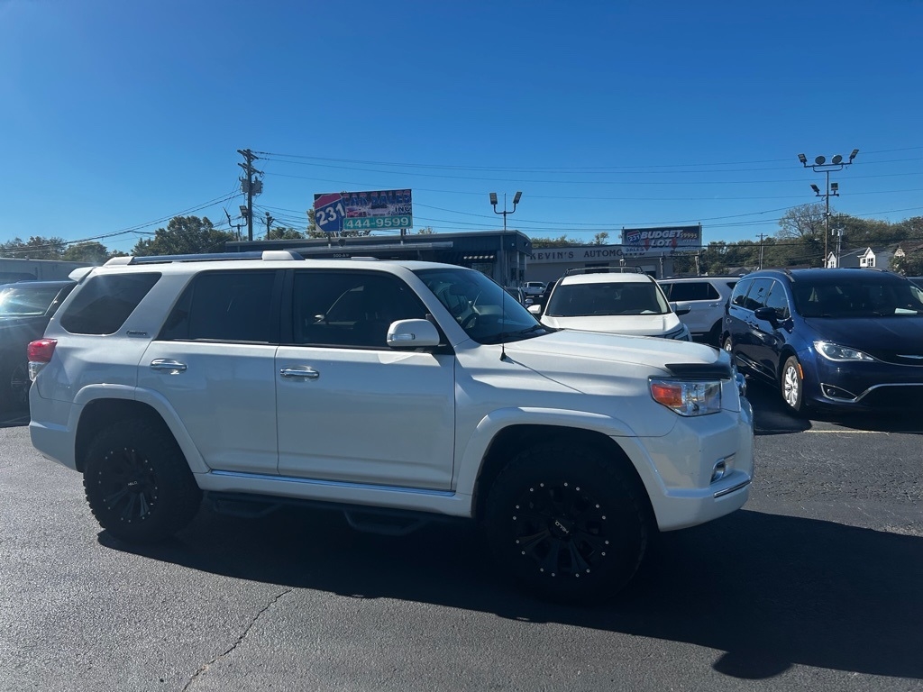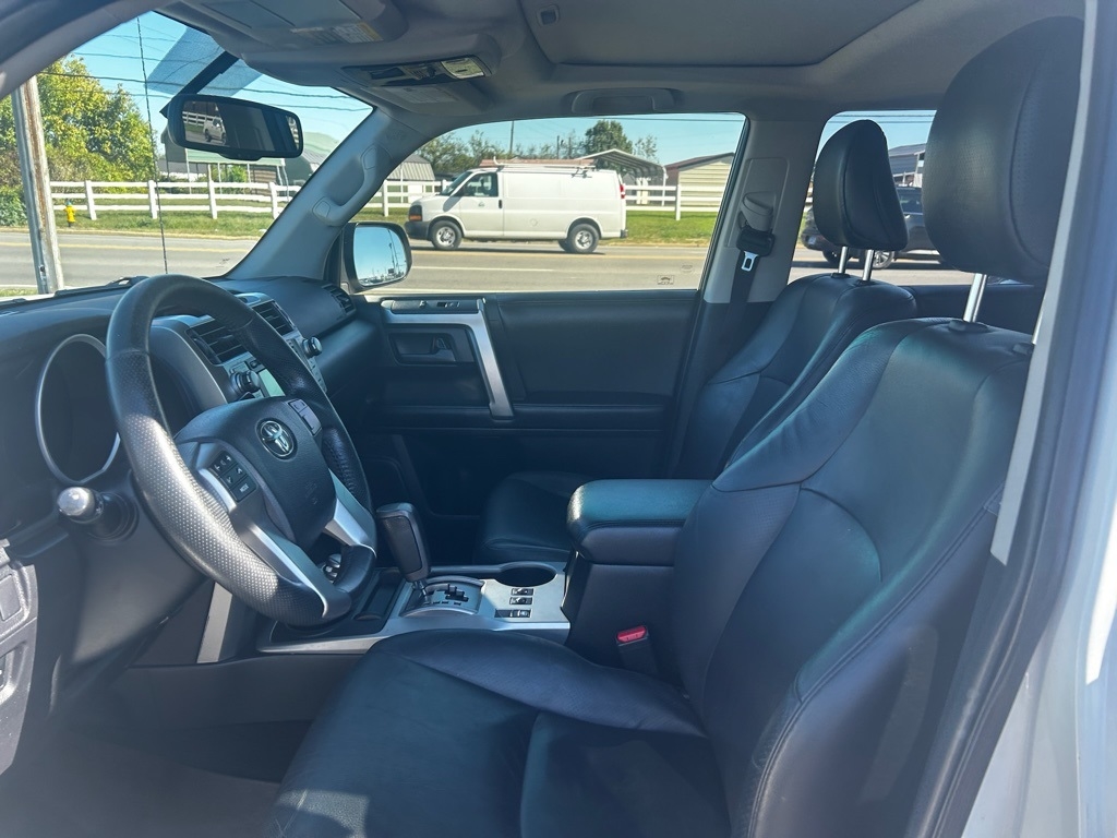 White 2013 Toyota 4Runner Limited 4WD 5-Speed Automatic with Overdrive 4.0L V6 SMPI DOHC 4WD, Black w/Leather Seat Trim, 20" x 7.5" Unique Dual 6-Spoke Alloy Wheels, ABS brakes, Alloy wheels, Compass, Electronic Stability Control, Front dual zone A/C, Heated Bucket Seats, Heated door mirrors, Heated front seats, Illuminated entry, Leather Seat Trim, Low tire pressure warning, Power moonroof, Power Tilt & Slide Moonroof w/Sunshade, Remote keyless entry, Traction control.